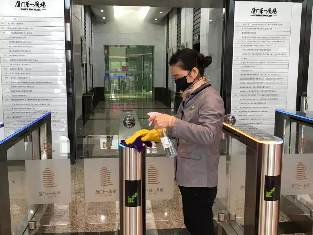 全天候24小時(shí)值崗,逐一為全體人員測(cè)量體溫,要求進(jìn)出人員佩戴口罩,使用專(zhuān)業(yè)設(shè)備對(duì)每個(gè)角落消毒……這些已成為廈門(mén)第一廣場(chǎng)物業(yè)服務(wù)人員每日的例行工作。廈門(mén)第一廣場(chǎng)作為大洲集團(tuán)旗下全海景5A甲級(jí)寫(xiě)字樓,樓內(nèi)有近百家企業(yè)入駐,盡管不少?gòu)?fù)工企業(yè)紛紛采取輪班制度,通勤人數(shù)依然較多,為了最大程度確保廣大業(yè)戶(hù)的安全,廈門(mén)第一廣場(chǎng)根據(jù)集團(tuán)下達(dá)的防控指令,從內(nèi)到外嚴(yán)抓疫情防控,每一處細(xì)節(jié)都不放過(guò)。在前期全面疫情阻擊基礎(chǔ)上,組織全體樓內(nèi)業(yè)戶(hù)共同行動(dòng),共克疫情。